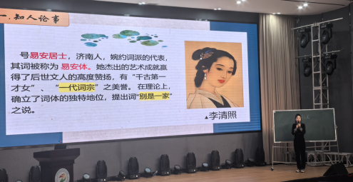 何建琴老师以宋代女词人李清照的词作为核心内容,分享了中国传统文化篇章中宋词的婉约之美,以李清照其词风既具“莫道不销魂,帘卷西风,人比黄花瘦”的婉约细腻,又有“生当作人杰,死亦为鬼雄”的豪放大气,展现“千古第一才女”卓越的才华和独立的个性。
