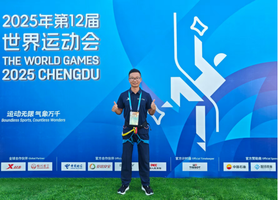 8月14日至16日,全球12国72名顶尖速度攀岩选手在成都天府公园赛道竞技,中国队斩获5金3银2铜。赛事顺畅背后是技术保障人员的守护,田超熊老师作为竞赛技术运行人员尽显专业。赛前他协助测试计时系统、调试保护系统,排查线路细节;赛中他站姿笔挺、专注值守,操作干脆利落。这份藏在细节里的专业,让他顺利完成赛事任务,赛后也收获了组委会与赛事代表的高度认可与赞扬。