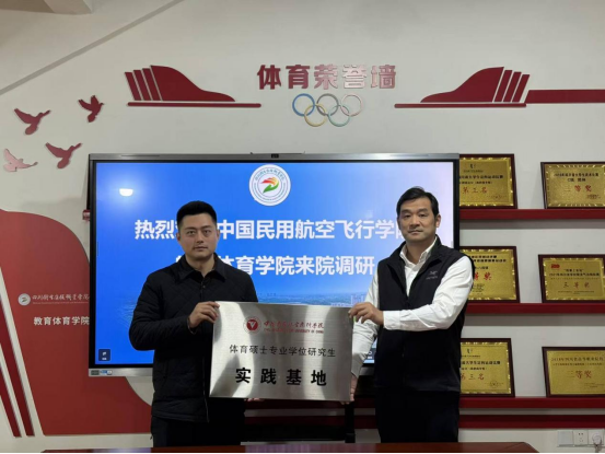 12月23日,中国民用航空飞行学院航空体育学院院长杨鸣亮一行来访我院。期间,代表团参观了体育实训与创新创业基地,我院代表人介绍了基地建设与学生创新创业成果。双方围绕“体教融合”与学生实践创新能力提升开展了深入交流,并举行了“体育硕士专业学位研究生实践基地”挂牌仪式。