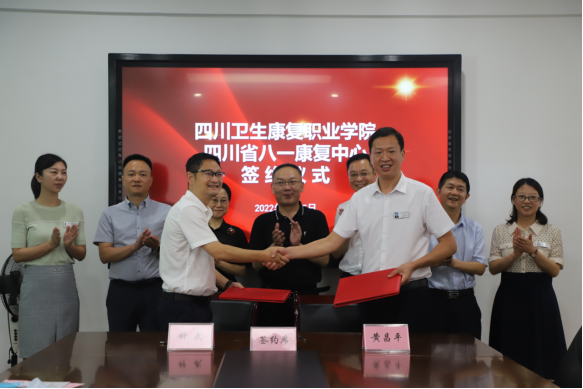为了更好的培养符合康复辅助器具产业发展所需的高素质技术技能型人才,充分发挥高等职业医学院校、医疗卫生机构临床医资及教学资源优势,7月15日我院与四川省八一康复中心(四川省康复医院)签订合作举办医教协同班协议。四川省八一康复中心(四川省康复医院)党委书记马小平,党委副书记、院长钟武,副院长何霞,辅具中心主任刘夕东,行政办公室主任陈俊臣,学院院长黄昌平,副院长章荣等参加签约仪式。