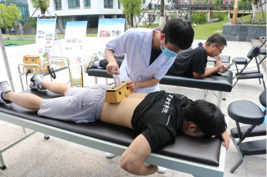 为全面展示学院办学特色和办学成果,营造全社会关注职业教育、重视职业教育的良好氛围,5月11日下午,主题让生活更美好的职业教育活动周在学院仁济广场和各二级学院实训室展开。康复学院的学子在此次职教周活动中展现出了极高的专业水平和有温度的康复人素养。此次职教活动周康复学院在仁济广场、S-E-T悬吊实训中心、推拿按摩实训室开设专业介绍和专业技能展示点。值得一提的是此次职教周,康复学院的师生组织了一支特遣小分队,深入行政楼四、五楼职能处室,为老师门提供一次上门康复服务,收获了职能处室教师的一致好评。
