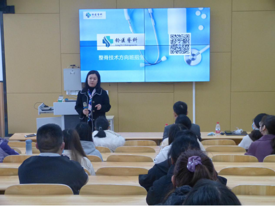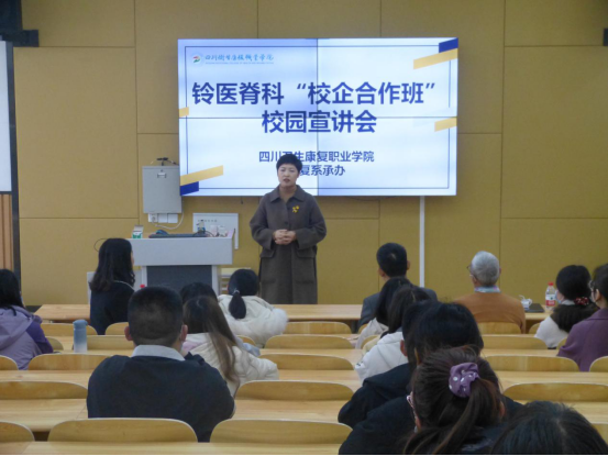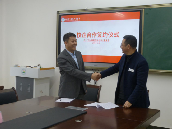 3月3日下午,成都铃医健康科技有限公司与我院康复系开展“校企合作班”,成都铃医健康科技有限公司创始人南贺、周航总经理、卢纳辉总经理一行3人到校宣讲。参与此次活动的还有康复系副主任谭惠、康复系教师刘斯吉以及有意向参与报考的百名同学。宣讲会现场进行得非常顺利,宣讲会结束后学院副院长章荣代表学院与成都铃医健康科技有限公司创始人南贺签订了校企合作相关协议。