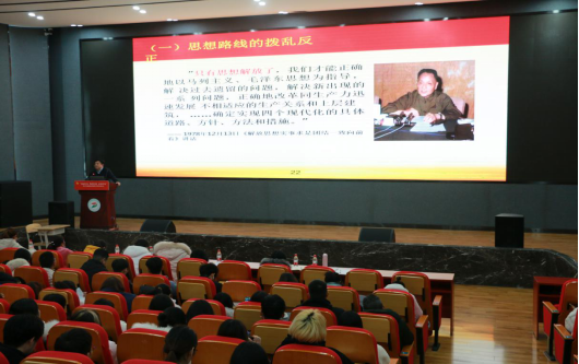 柯教授首先从康复专业为切入点,阐述康复专业与建设健康中国、助力民族复兴战略的重要意义,并说明一个时代的理想与其社会环境和社会需求息息相关。用邓小平同志生平追求理想的生动事迹,向同学们展示了邓小平同志的全心全意为人民服务,甘做人民的儿子的高尚精神,以及邓小平同志在追求革命胜利和国家繁荣道路上的艰辛与斗志。