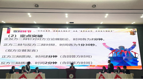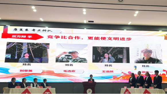 主持人宣布“明理思辨·笃学躬行”校园辩论赛正式开始。历时一个多月的激烈角逐,最终进入总决赛的队伍分别是康复系“奇正辩队”和护理系“三线rapper在线念稿队”,眼看一场精彩的辩论会就要拉开帷幕,谁会成为笑到最后的队伍呢?拭目以待吧 !