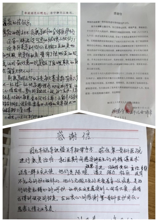 成都市第一骨科医院的同学们还收获了大量患者的感谢信,康复学院的“小瑞”们再接再厉哦!