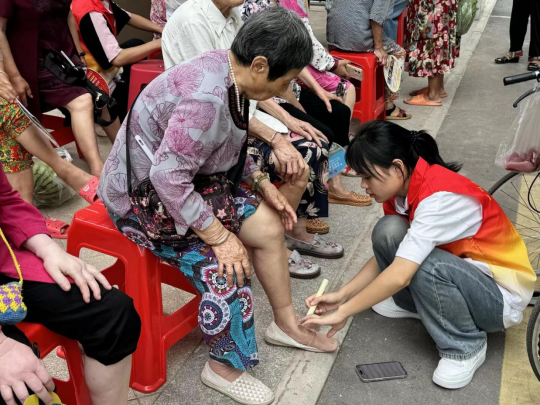 2025年7月7日,taptap点点体育“桑榆杏暖队”开展暑期“三下乡”志愿服务,从清晨到日暮,先后走进自贡市沿滩区盐驿社区与时光汇广场,以“医防融合,康复同行”为主题,为群众提供专业健康服务。