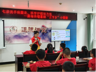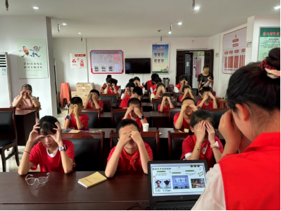 桑榆杏暖团队发挥专业优势,为儿童开展健康科普:示范“七步洗手法”,通过动画解析近视成因,手把手教正确读写姿势与眼保健操,筑牢视力防护线。