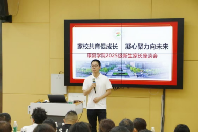 随后,康复学院党总支书记李勇上台,详细介绍了学院各专业的核心特色、课程优势,以及师资团队的专业背景、教学经验与科研实力;同时,他还特别强调了家校协同的重要性,鼓励家长与学校紧密配合、共同发力,助力孩子在大学阶段找准成长方向、实现个性化发展。