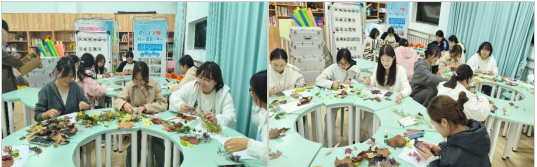 为进一步强化实践育人成效,活动特别增设“落叶拼图”创意环节,将劳动教育与美育、环保教育深度结合。学生们充分发挥想象力与创造力,利用校园内常见的枯枝落叶作为创作材料,巧妙拼贴出色彩丰富、造型新颖的创意作品——既有展现职业特色的康复相关图案,也有传递环保理念的自然主题设计。在轻松愉悦的创作过程中,学生们不仅享受了动手实践的乐趣,提升了审美鉴赏与创新思维能力,更深刻认识到“变废为宝”的环保意义,进一步增强了生态保护意识与社会责任感,实现“以劳树德、以劳增智、以劳育美”的综合育人效果。