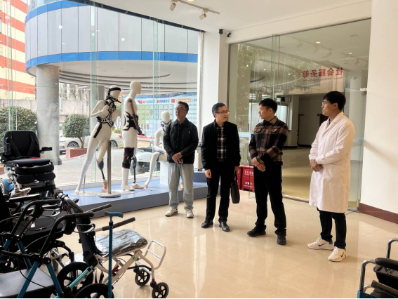 调研组在中心负责人带领下,实地走访业务区域、技术操作车间及服务大厅,详细了解中心发展布局、核心业务、先进技术设备及运营模式,直观把握康复辅具行业前沿动态与实践应用场景。