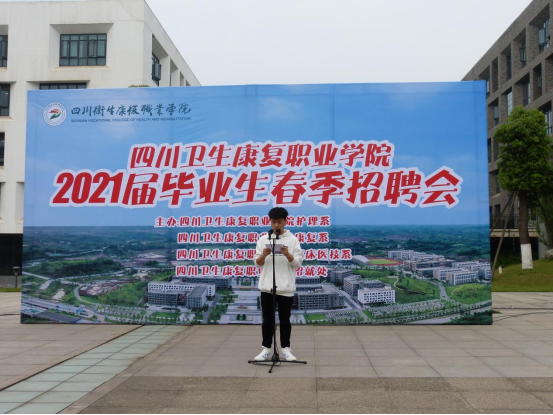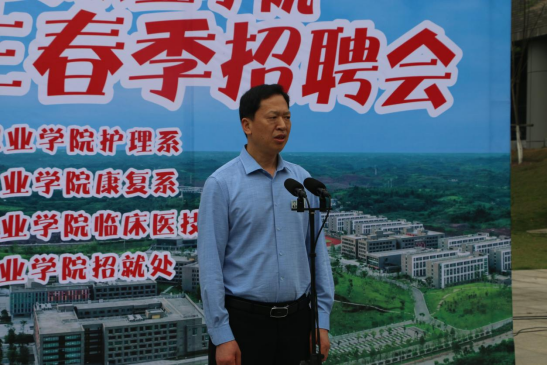 招聘会开幕式上,副院长黄昌平致开幕词。黄院长首先肯定了学院近年来取得的长足发展,学院的发展必然也离不开用人单位的支持,对在场的用人单位表示了真挚感谢,希望在场用人单位和同学们都能达成理想的双选结果。康复系毕业生敬波涛代表全体毕业生发言:“十年树木,百年育人,我们的成长离不开学院的栽培,今后要更加积极地回馈社会,不负用人单位的培养,为母校争光”。