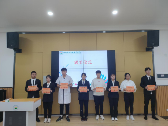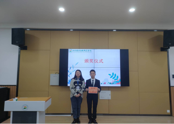 比赛最后,由各位评委给获奖学生颁发证书,此次活动共设有一个一等奖、两个二等奖、三个三等奖,九个优秀奖。