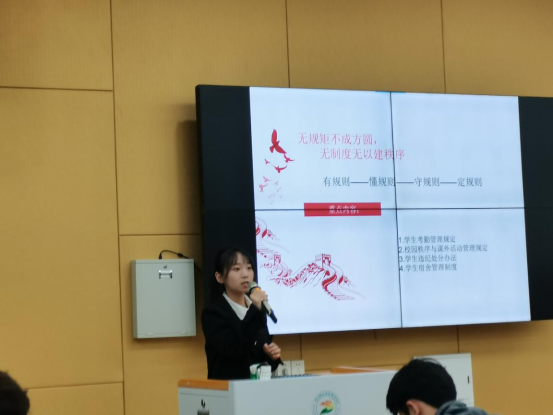 最后康复系学生会主席汪若宇对本次活动做出总结并提出希望,校规校纪不仅是在校园内的规范,更是我们今后踏入社会的准则,作为医学生的我们,应该在日后的生活中学会更好的规范自我,严格要求自己,勇担大任。