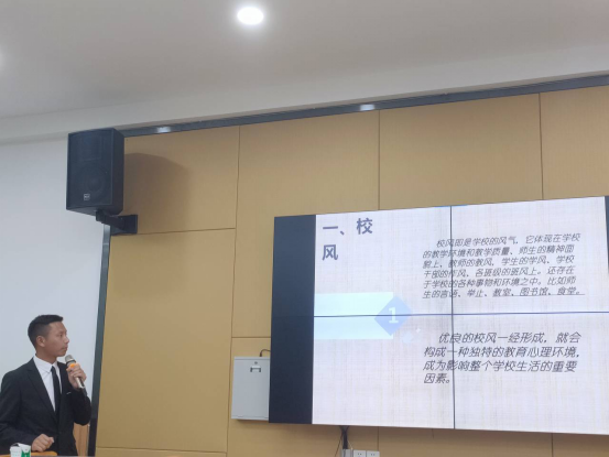 主持人宣布活动开始,经过初赛的激烈角逐,共有十五名学生晋级到决赛。15位参赛人员将以宣讲方式将校规校纪内容进行“解剖”,以更生动、更形象的方式来宣传校风校纪的重要性。