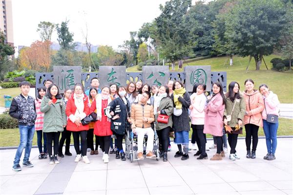 2016年11月23日,在“重建生活为本”作业治疗模式的指导下,自贡一医院姜冲老师带领我院15级OT方向班的全体同学组织了一次有趣的“作业活动”——到汇东公园模拟偏瘫病人出行,体验偏瘫患者的户外活动。