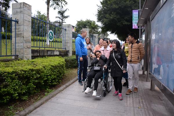 本次活动以真实地模仿、真切的感受作为活动要求,志在让同学们设身处地的体验偏瘫患者出行的困难,为偏瘫患者“环境改造和辅具设计”的学习奠定一个好的基础。同学们按照事先抽取的病例分成了五个组,每个组有一个同学模仿偏瘫病人,根据不同的案例采取坐轮椅或搀扶着走路的方式出行。在出发前,同学们向姜老师请教了偏瘫病人的划圈步态,大家通过前期的学习对偏瘫有了更深入的认识。一路上,同学们认真地模仿偏瘫患者出行,这也引来了很多路人的关注,甚至有阿姨真的以为模仿者是偏瘫患者,十分关心我们的偏瘫模仿者。过后,待我们向她解释清楚后,得到她的强烈赞扬,并对此类活动表示了鼓励和支持,这莫大地鼓舞了同学们的学习热情。