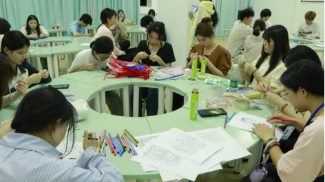 活动尾声,同学们在舒缓的音乐中完成了小组手工作品。在安静祥和的氛围里,大家发挥想象力,制作出凝聚耐心与创意的手工品。