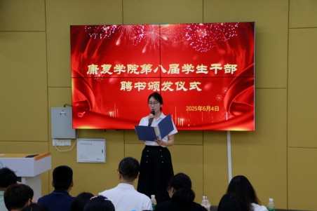 凝心聚力,开拓新篇,勇担使命,砥砺前行。在指导老师的带领下,学生组织进行了庄重的交接仪式,延续了学生组织团队文化和协作精神,也增强了学生干部的使命感与责任感。最后,康复学院副院长秦志刚上台讲话,在肯定第七届干事的同时提出了对第八届干事的殷切展望,强调"变的是岗位,不变的是责任",要求新一届团队以"归零心态"再出发,在守正创新中打造更具影响力的服务。