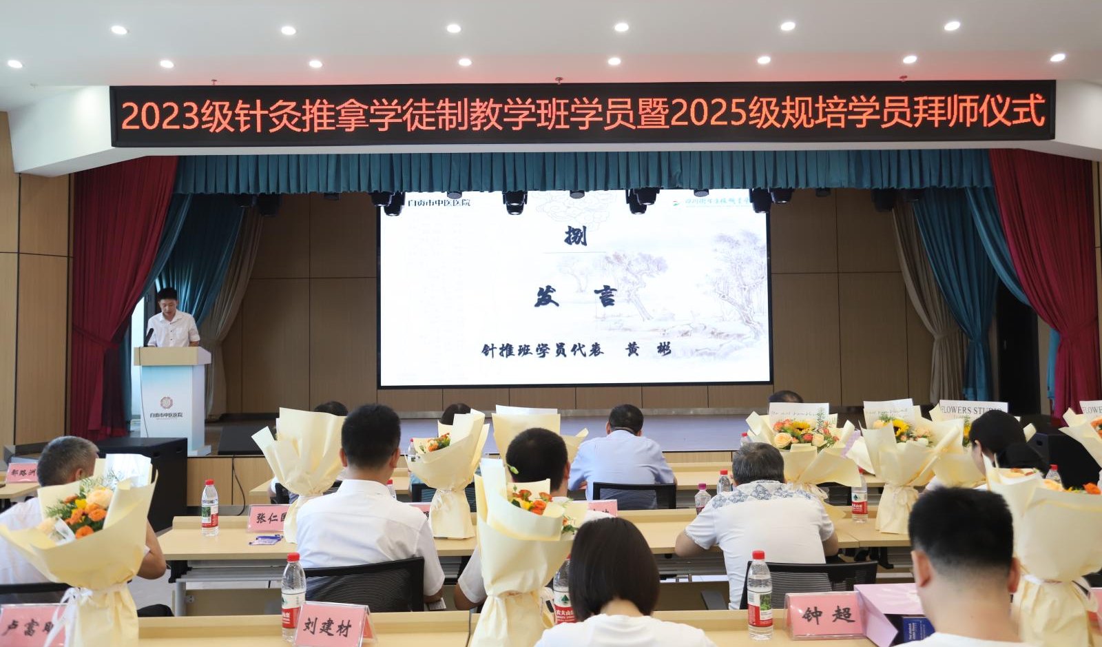 仪式在针灸推拿学徒制班学员代表的深情朗诵中拉开序幕,抒发了学子们传承中医、投身临床的坚定志向。