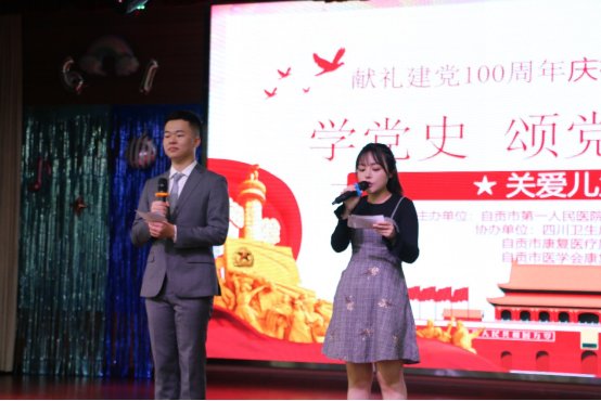 2020年6月1日上午九点,由自贡市第一人民医院、自贡市残疾人联合会、taptap点点体育主办,康复科牵头举办了“建党100周年‘学党史、颂党恩、办实事’关爱儿童庆六一活动”。出席领导有自贡市残疾人综合服务中心副主任张兴隆、自贡市第一人民医院院长丁中印、taptap点点体育副院长章荣、自贡市第一人民医院康复科主任任凯,自贡市残联四级调研员曾洁。