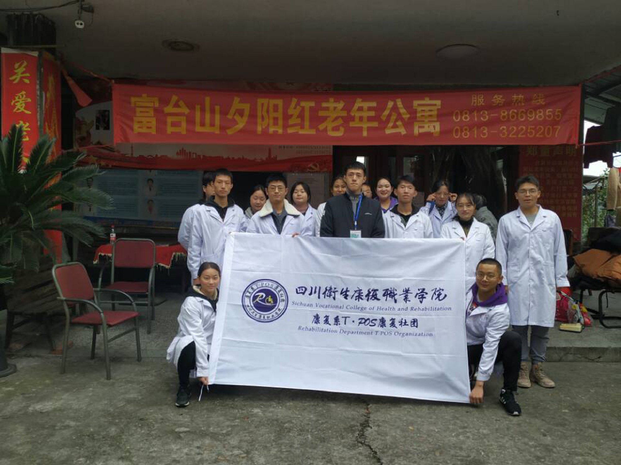 2019年11月20日中午,来自T-POS康复社团的同学们,在杨珂老师和两位社长的带领下,浩浩荡荡地前往富台山夕阳红老年公寓,开展康复社区服务。