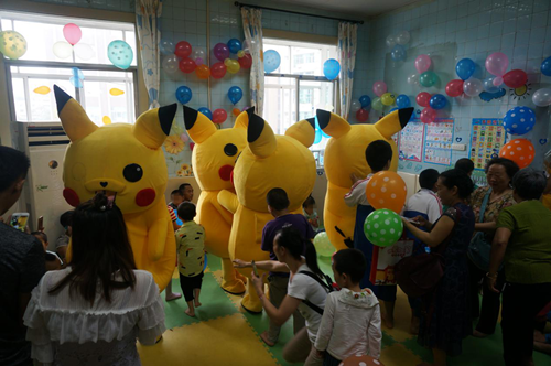 接下来,为了给孩子们带来欢乐,大家精心准备玩偶舞,快看,四个活泼可爱的皮卡丘来了,看看他们玩儿多么开心!