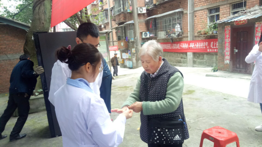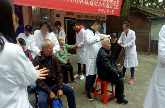 同学们为居民提供推拿服务