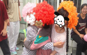 入党积极分子根据特殊学校儿童成长和发展规律,设计了适宜游戏,大朋友和小朋友一起完成游戏内容,提高了小朋友们社交能力和感知能力。