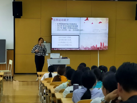爱国,是人世间最深沉,最持久的情感。在本次党课活动上,主讲人吉思佳老师勉励广大青年学子热爱伟大祖国,胸怀忧国忧民之心,爱国爱民之情,不断奉献祖国,奉献人民,让爱国主义的伟大旗帜始终在心中高高飘扬。接着,吉思佳老师就五四运动开展的时间线进行重点阐述,将这一场伟大的爱国主义运动活灵活现地展现在同学们面前,同时还通过视频传授,问答互动等趣味环节让同学们增强了学习趣味性。最后吉思佳老师将五四运动上的爱国精神延伸到现今中国局势中,让同学们用新思想来辩证看待新局势,更深入弘扬了五四精神的精髓更具体激扬了青春时代。