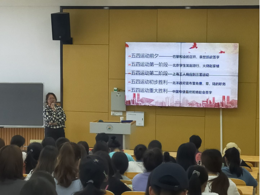 20世纪初,中华民族这个古老的民族,正处在前所未有的大变局关头。面对国破家亡,山河破裂的局面,无数爱国青年勇挑历史重担,敢于直面人生,冲在反帝反封建的最前沿,为新中国的最后胜利奠定了坚实基础。在面对新时代历史使命和重要任务的关头,为加强新时代青年的责任与担当。党建促进会于2021年5月14日下午,在一教B303进行“弘扬五四精神,激扬青春时代”主题的开放式精品党课活动。参与本次活动的有康复系党支部教师党员、党建促进会成员、二课堂学员及入党积极分子共计150余人。