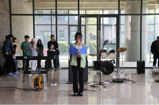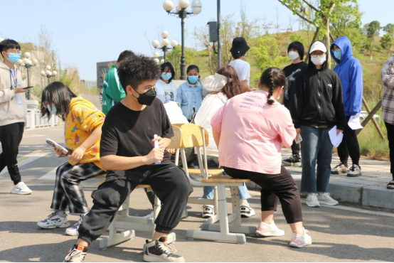 活动在康复学院舞蹈队与三甲乐队舞蹈和歌声中开幕。参与人员依次按顺序排队领取打卡表。同学们热情高涨,秩序良好,一起在三月里学习雷锋精神。