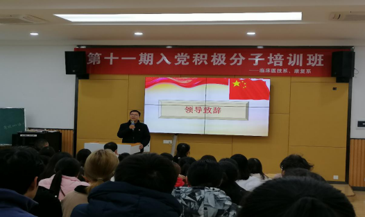 为进一步做好党员发展工作,加强对入党积极分子的教育和培养,2020年11月25日由临床医技系党支部和康复系党支部精心筹备的第十一期入党积极分子培训班开班仪式在4教D205顺利举行。参加此次开班仪式的有党委办公室副主任赵天成、党委办公室贾兰兰、康复系党支部副书记谭惠、临床医技系党员教师代表马泽刚及各系部学员共计80余人。