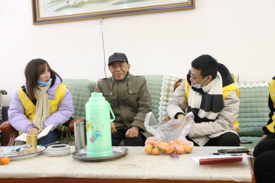 迎着冬日暖阳,踏着遍地梅香,同学们整理队伍前往龙湖社区,按照分组,各组分别对家中的老党员及广场上的老人进行访问和记录。