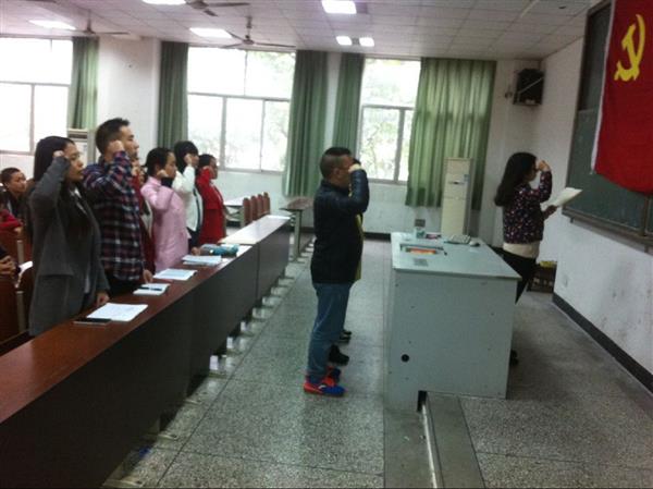 3月23日下午3:00在教学楼214,第五党支部如期举行了支部3名预备党员转正的大会。大会共有4项事宜:一是向党旗宣誓,二是预备党员同志作预备期的情况汇报,三是培养联系人对预备党员预备期间的教育考察情况作介绍,四是支部大会讨论并采取无记名投票方式对预备党员是否如期转正进行表决。