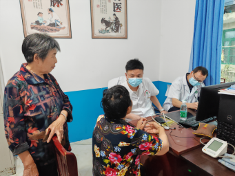 卫生院门口,康复学院“朝阳追梦”大学生暑期三下乡社会实践小分队的学生们为乡亲们测血压、血糖,帮助乡亲们放松肩颈。专家们丰富的专业知识,同学们热情的宣教服务态度赢得了在场群众的广泛赞誉。