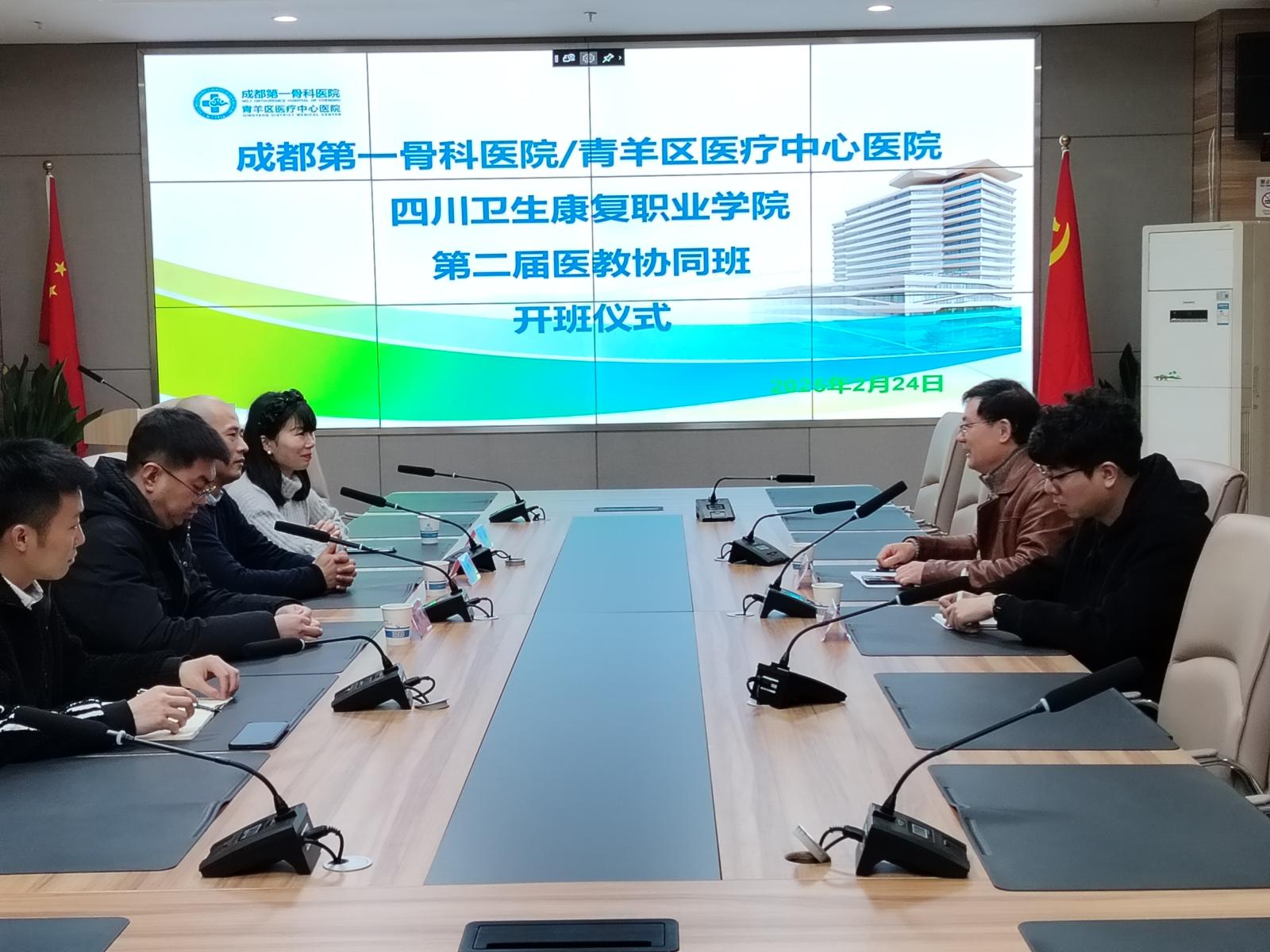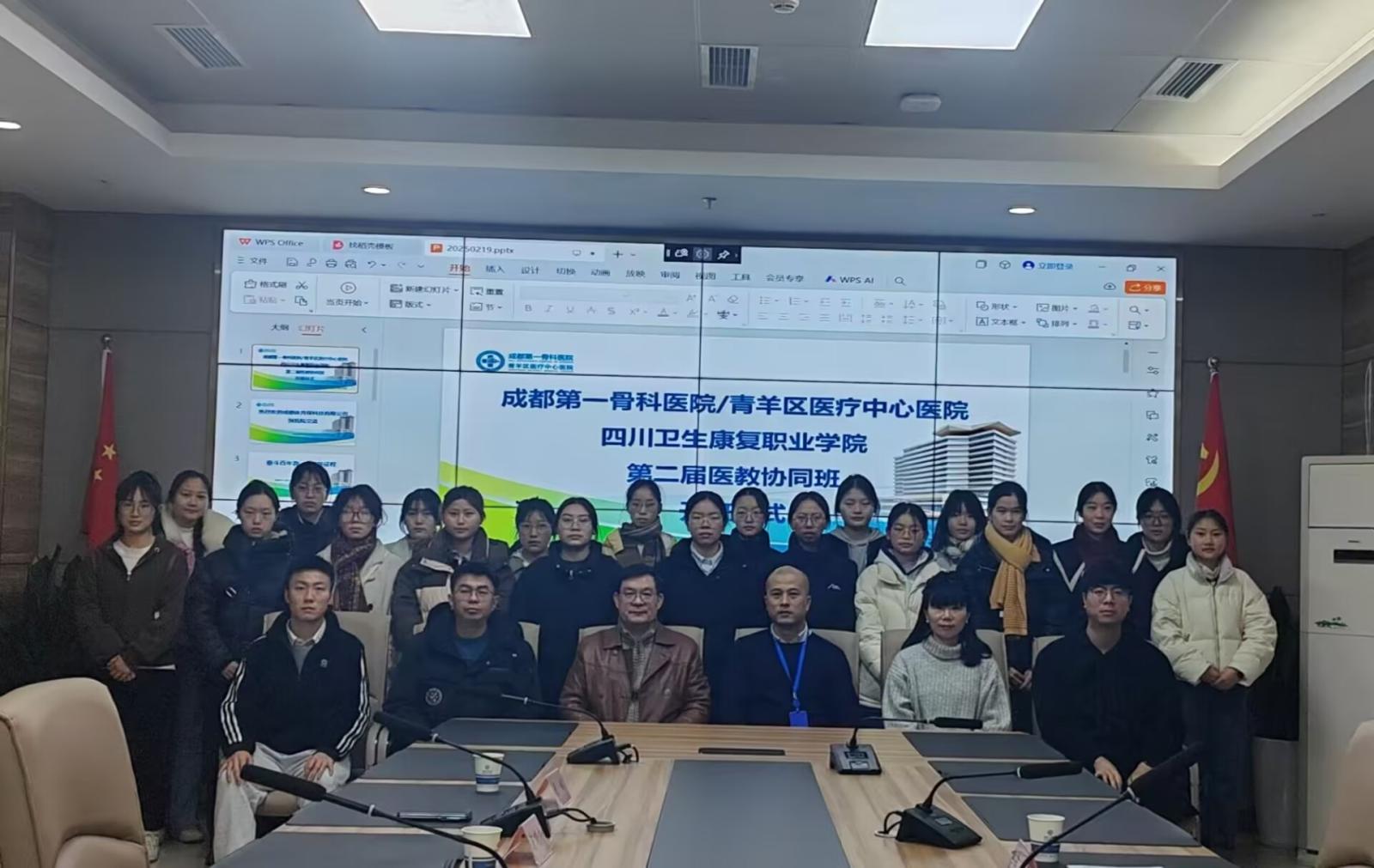 近日,成都第一骨科医院与taptap点点体育第二届医教协同班开班仪式在成都第一骨科医院第一会议室举行。成都第一骨科医院(青羊区医疗中心医院)副院长唐晓俞,医务部部长蒋斌,康复医学科主任胡婷,康复学院副院长李勇以及双方相关部门负责人、教师代表和全体医教协同班学生出席开班仪式。