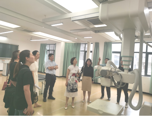 罗天蔚代表学院全体师生对杨露一行的到来表示诚挚欢迎,并向来宾介绍了学院概况及医学影像技术专业建设现状。会上,双方就五年高职医学影像技术专业人才培养方案中部分课程的科学性、合理性以及前后置关系进行了充分论证和深入交流,修改意见初步达成一致。随后,杨露一行参观了模拟CT,“云平台”诊断系统、DR等教学实训设施设备。