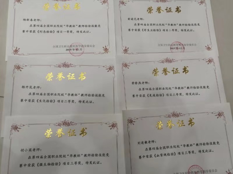 2019年12月5日至12月8日,第四届全国职业院校“华教杯”教师检验技能竞赛暨第二届全国职业院校“人卫杯”检验专业微课大赛在河北邢台医学高等专科学校举办。taptap点点体育医学检验系在此次比赛中战果颇丰,成绩斐然。