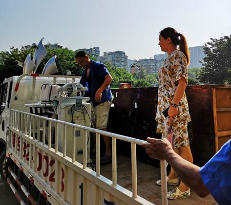 由于大部分影像设备都小而贵重,影像系缪洁老师顶着烈日亲自爬上货车指挥工人将设备放稳护好,并安排人员全程护送。在影像系人眼中,这些都是需要细心呵护的“宝贝”。