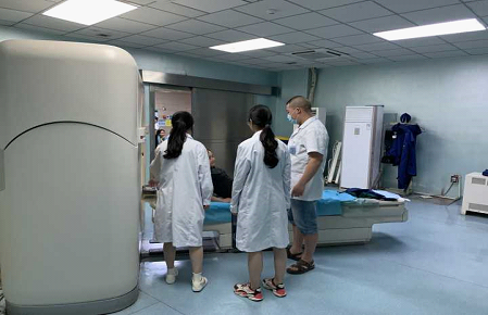 在岗位体验中,同学们认真聆听老师的细心讲解,了解CR、DR、CT、MRI、DSA、影像诊断、图像后处理、超声、核医学、放射治疗等相关岗位的工作流程、注意事项以及临床应用等。在听完老师的讲解后,同学们开始实际操作,如与病人交代注意事项、以及摆体位。同学们从中学习到人文关怀、医患沟通和医疗安全意识的培养。