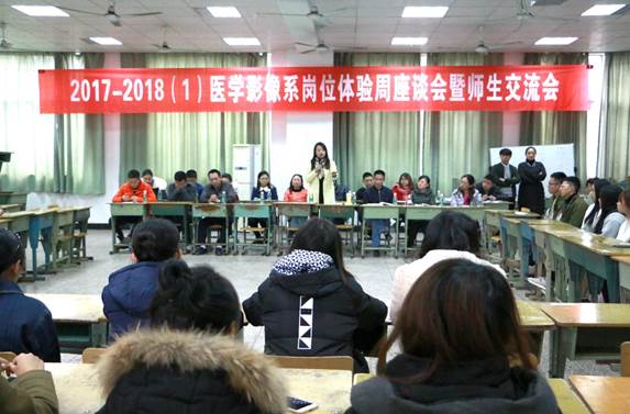 12月8日,医学影像系在A315举办了岗位体验周座谈会暨师生交流会,此次座谈会主要面向此前两周在附属医院参加岗位体验的医学影像技术专业的大二学生,以及部分对岗位体验充满好奇的大一新生。附属一、四医院放射科、超声科、核医学科的姜萍、袁峰、刘玉建等10名科室代表和带教老师以及医学影像系李冰、秦志刚、黄政等5名专任教师出席此次座谈会。会议的主要内容为倾听同学们的岗位体验感想,以及为他们在岗位体验中遇到的问题答疑解惑。