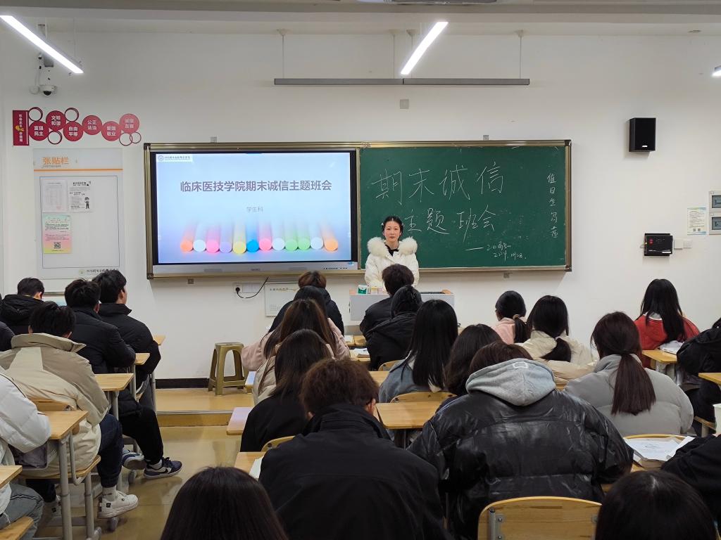 为了加强我院学风建设,临床医技学院于2023年12月27日-2024年1月2日期间分班级组织了诚信考试教育主题班会。班会旨在让同学们认识到诚信的重要性,自觉遵守考试纪律,树立正确的价值观。