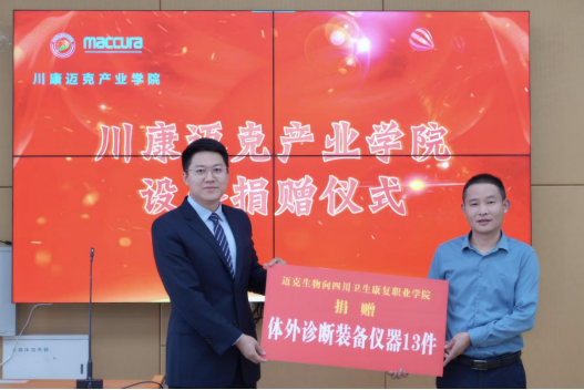 活动仪式上,学校与长期合作伙伴迈克生物股份有限公司共同为2025年“迈克班”45名优秀学生颁发奖助学金。特等奖学金获得者林于熙作为学生代表发言,表达了珍惜平台、刻苦学习、立志成才的决心。迈克生物培训经理王杰在讲话中高度认可这一创新培养模式,并代表企业向学校捐赠60万元“迈克基金”及13台教学仪器设备,为项目建设提供坚实保障。老年体外诊断复合型人才培养项目将依托已有的“迈克班”平台,通过“三段式”校企联合培养,构建“专业交叉、能力复合”的特色课程体系,为老年医疗领域输送紧缺人才。活动最后,学校副校长李琴对项目的升级启动表示热烈祝贺,并在讲话中指出,开展老年体外诊断复合型人才培养是学校服务健康中国战略的重要举措。她希望同学们珍惜这一跨学科学习平台,夯实专业基础;要求三个学院加强协同联动,整合优质资源;同时强调要以四川省产教深度融合示范项目为牵引,创新合作机制,将本项目打造成为校企协同育人的典范工程。