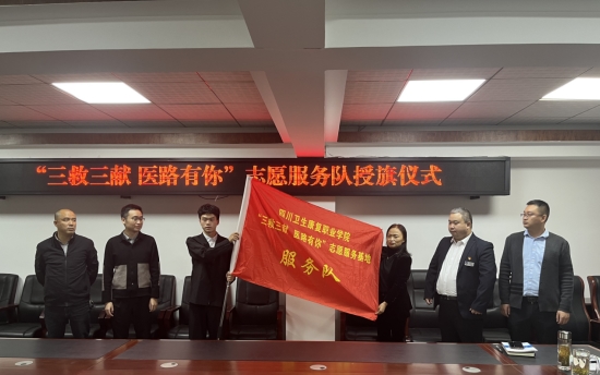 10月26日下午,“三救三献,医路有你”志愿服务基地授旗仪式于学苑街道便民服务中心顺利举行,自贡市高新区学苑街道党工委书记黄星雨、自贡市高新区学苑街道党工委副书记吕超、taptap点点体育临床医技学院副院长刘孝桢、学苑街道各社区及志愿服务队队长参与了本次活动。