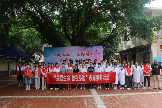 2023年5月7日上午,学院“三救三献医路有你”志愿服务队在白果社区开展了义诊服务活动。师生细心地为居民测量血压、测血糖,问诊、按摩、测视力、讲解医疗知识,深受社区居民的欢迎,义诊场面热烈,形成了一道别致的风景线。