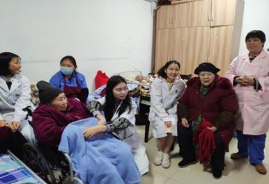 为了能更多的了解老人的生活同时带给他们快乐,影像社全体社员精心为老人们准备了一些有意义的节目,如红歌合唱、古风舞蹈、话剧、手语舞、冬季保暖小知识的宣讲等,表演过程中还穿插着与老人们温馨的互动,同时也为老人们送上了暖心的礼物和祝福。表演结束后,秦老师带领全体社员一起慰问卧床老人,并为每位老人送上了保暖小礼品,陪他们一起聊天、为他们按摩捶背,社员们还专门去食堂为老人包了抄手。看着老人脸上绽开的笑容,听见老人们感谢的话语,一切都是那么的美好。