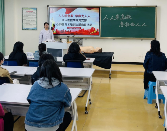3月24日,临床医技学院党支部在1-C512开展基础心肺复苏术培训主题党日活动,向学院辅导员普及急救技能,推广“人人学急救,急救为人人”的急救观念。临床医技学院党支部全体党员、学工部、各二级学院辅导员参加此次活动。