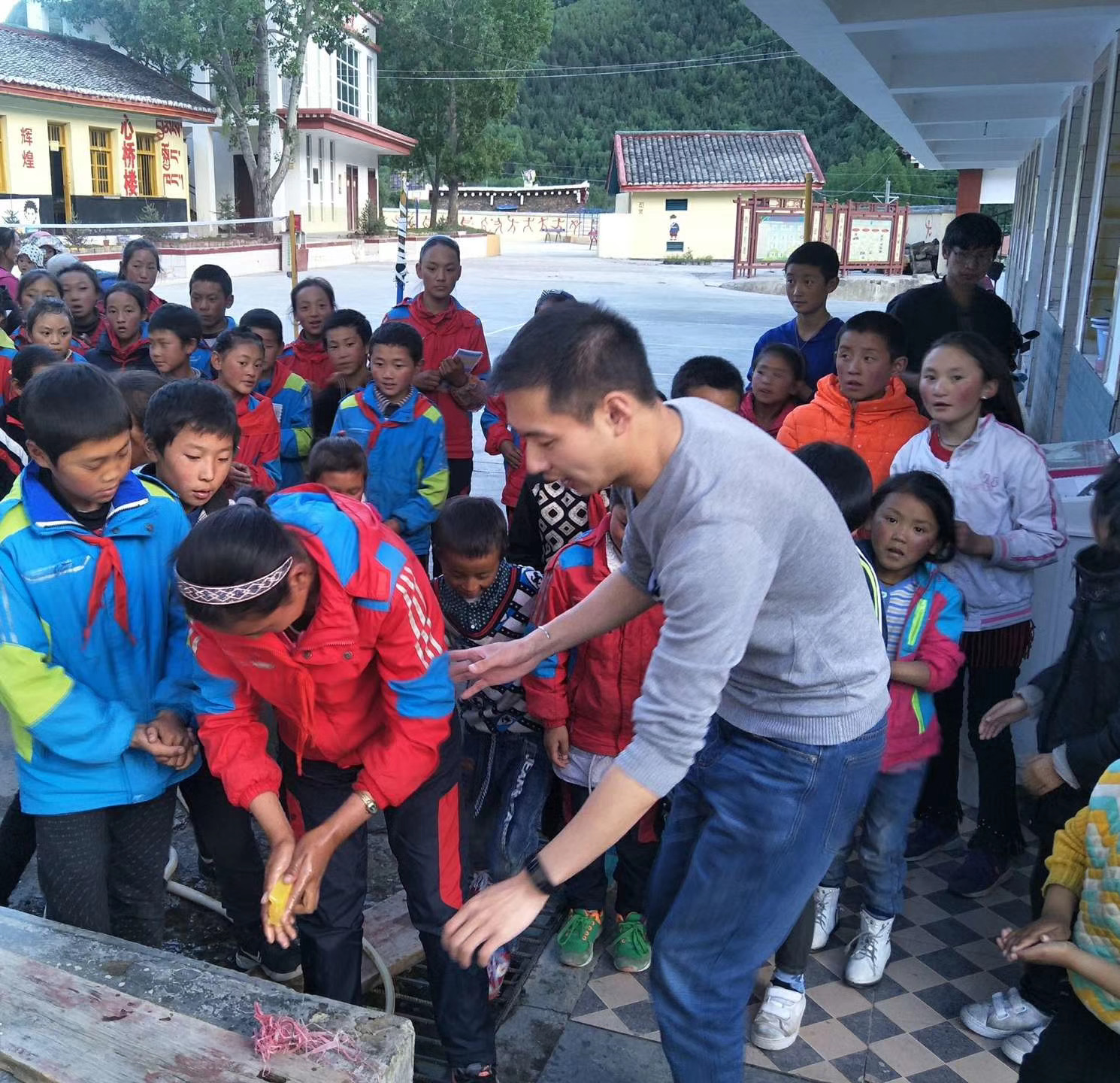 经过两个月的调研与筹备,学院在定点帮扶的道孚县克尔鲁村中心校开设的扶志“第二课堂”今日顺利开课,今天第一次课由我来上,授课内容为“七步洗手法”。我以不洗手、不正确洗手给身体造成的危害导入课程,孩子们表现出惊讶和害怕,我随即安抚大家不要担心,只要正确洗手就可以预防生病。随后我逐一分解七步洗手动作要领,我教得很慢,孩子们也学得认真。经过多次讲解和示范后,孩子们基本掌握动作要领。趁热打铁,我带着大家走出教室,来到洗手池处,请6名学生用肥皂练习“七步洗手法”,其余学生认真观看并指出做得不足之处。这是一次“学中做”、“做中学”的教学尝试,更大意义是让学生意识到养成勤洗手、正确洗手良好卫生习惯的重要性。
