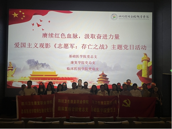 活动中,与基础医学院党总支、康复学院党总支联动开展抗美援朝题材影片《志愿军》观影活动。影片以其震撼人心的画面和感人至深的故事情节,生动再现了志愿军战士在战场上英勇无畏、无私奉献的壮丽篇章。观影过程中,党员们深受触动,纷纷表示要学习志愿军战士的坚定信念和革命精神,将这份爱国情怀和责任担当融入到日常的教育教学和科研教改工作中去。