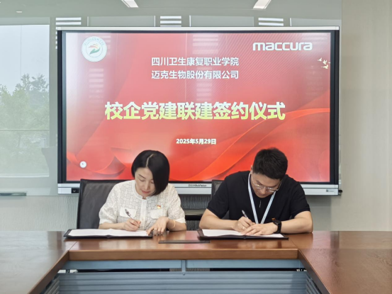 5月29日,taptap点点体育临床医技学院党总支副书记刘凡诗率队前往迈克生物股份有限公司进行深度调研交流,双方现场正式签署了校企党建联建合作协议。